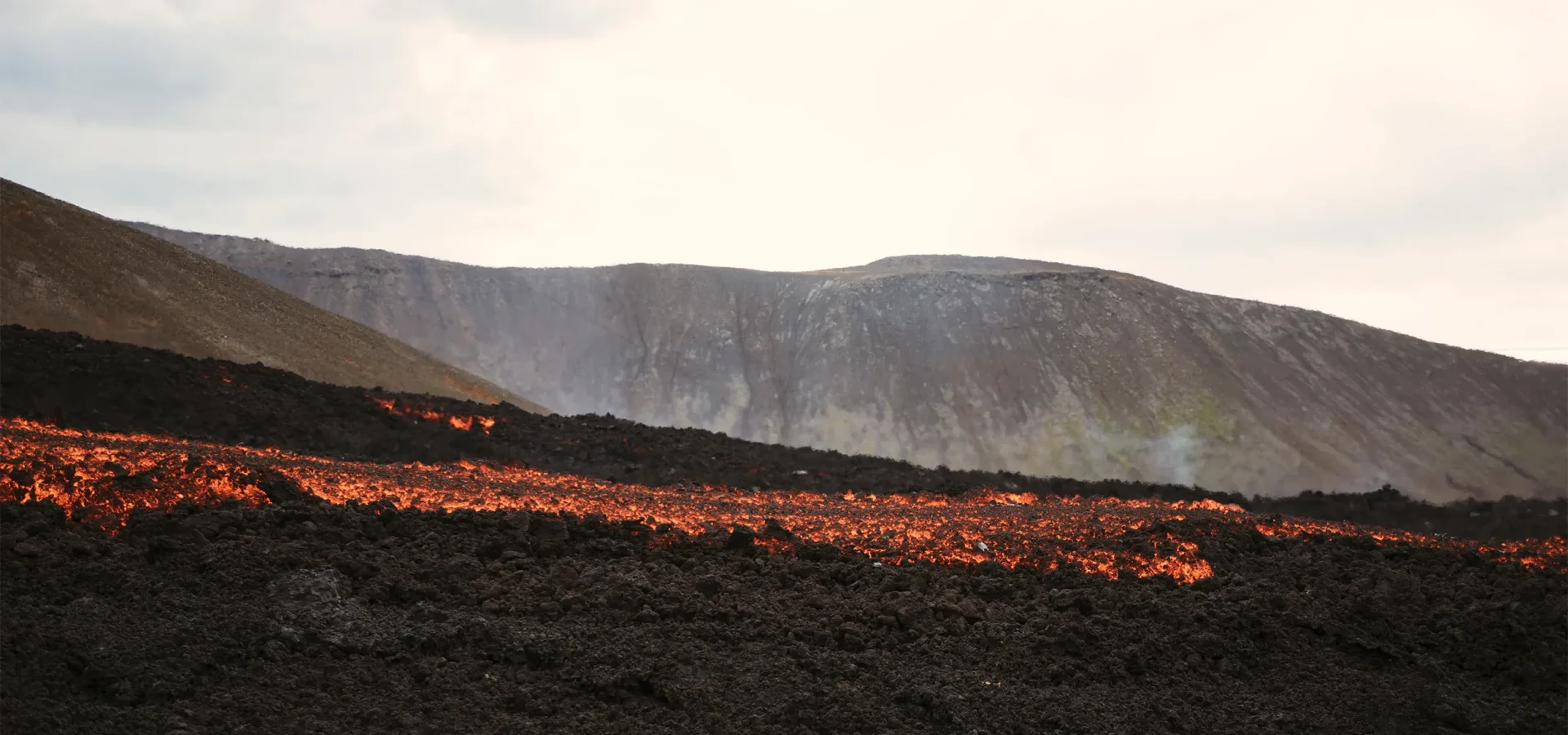 A lo lejos ya se veía el humo y el fulgor color rojo de la lava, y la emoción iba in crescendo conforme nos acercábamos. Lo que vimos allí fue absolutamente descomunal e inolvidable: el volcán había formado una enorme colada de lava que se desprendía libremente en dirección al valle de Meradalir, lugar donde años más tarde, en 2023, daría inicio otra erupción que formaría un nuevo cono volcánico.