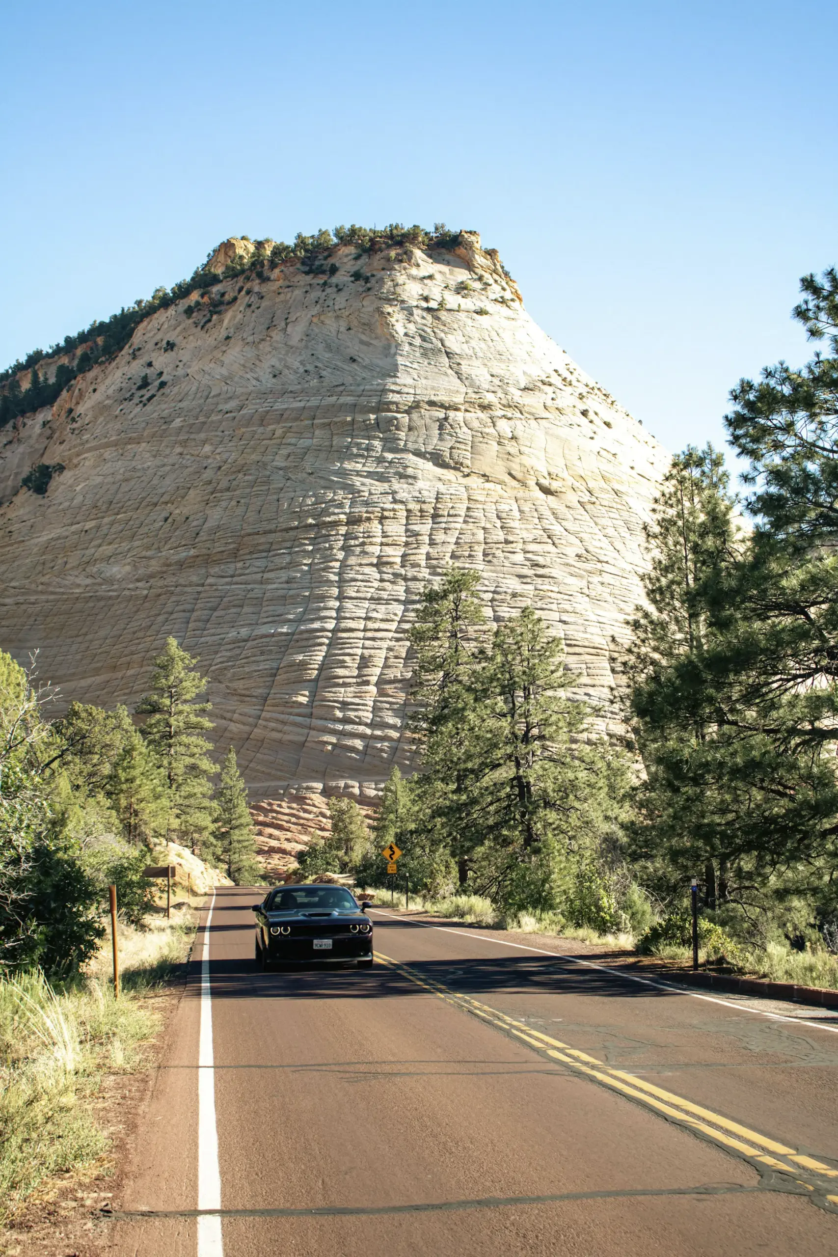 Esta carretera supone también un buen aperitivo de Zion, sobre todo si entras al parque por su entrada este: el paisaje va ganando espectacularidad de forma progresiva hasta el estrecho túnel de Zion-Mount Carmel, donde la carretera se convierte en un carril de un único sentido y se regula el paso de los vehículos. Al otro lado, nada más cruzarlo, te encuentras ya en el cañón de Zion y un paisaje increíble se abre ante tus ojos. De aquí y hasta el centro de visitantes la carretera va descendiendo en continuas eses, con múltiples recodos donde hacer una parada.