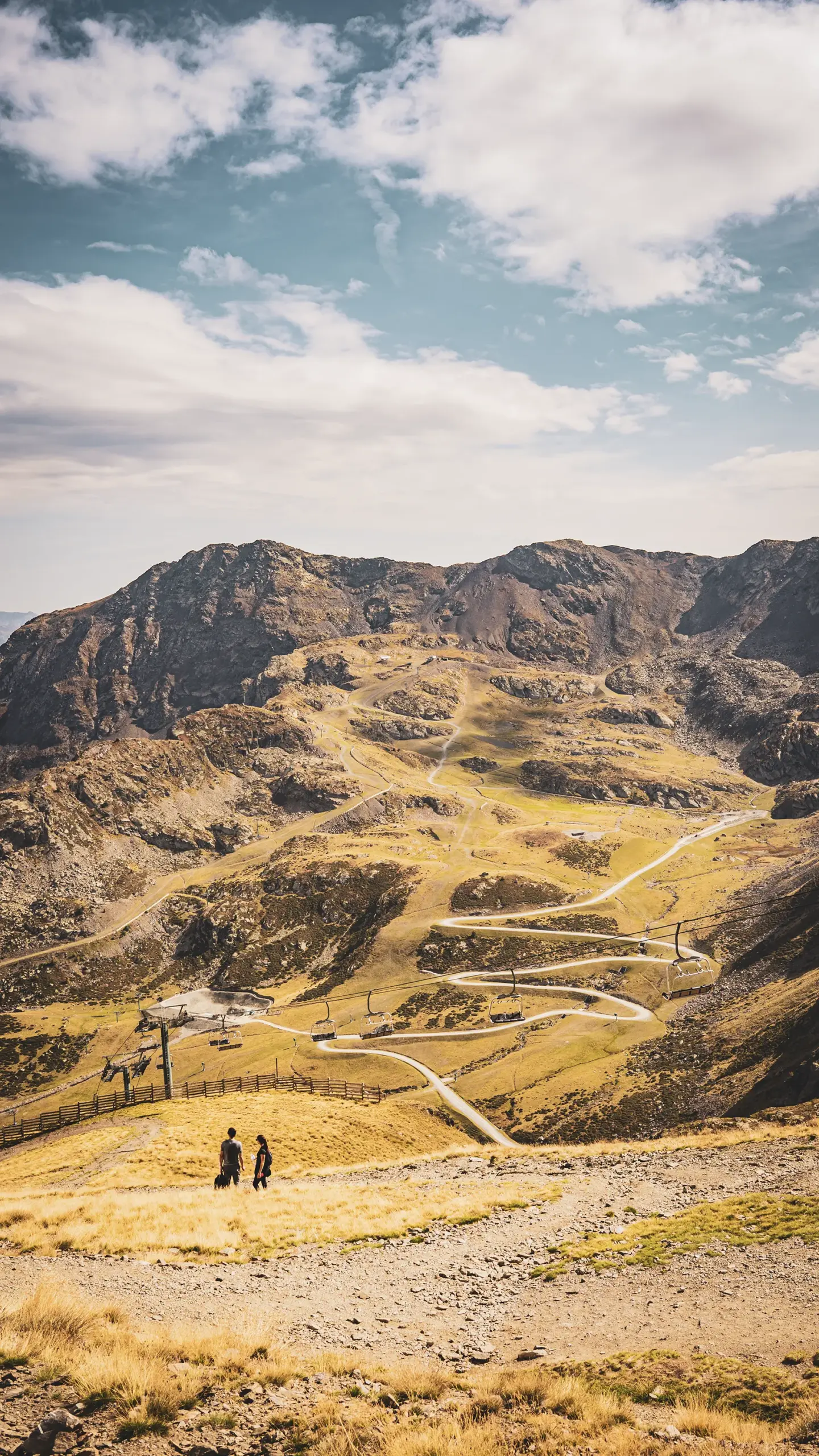 Sin embargo, hoy el objetivo es subir hasta el Mirador Solar de Tristaina, escultura metálica en forma de anillo, suspendida sobre las montañas, que simboliza el paso del sol y los ciclos astronómicos a lo largo del año. La obra fue idea de Joan Viladomat, el famoso empresario andorrano que quiso dinamizar la zona para su uso en verano, tras comprar las estaciones de Pal Arinsal y Ordino Arcalís, integrándolas en el grupo de Grandvalira.