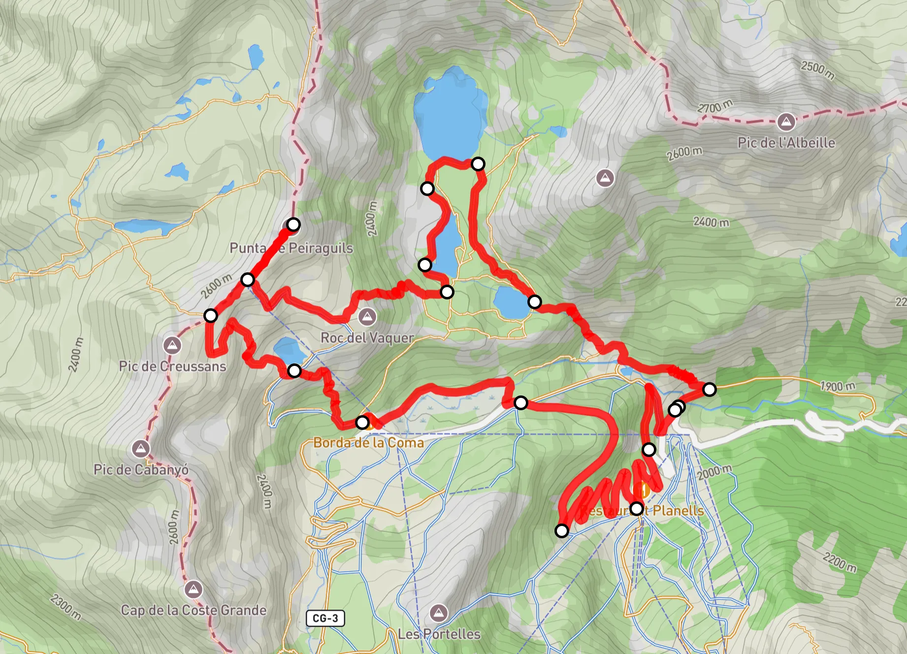 El sendero más sencillo tiene una longitud de apenas un kilómetro, con un desnivel ínfimo de 200 metros, y va resiguiendo las orillas de los tres lagos. Hay opciones más cañeras para quien las busque: otro sendero realiza el bucle por una zona más aérea por el Circ de Tristaina, y hay otro sendero aún más difícil que sube hasta el Pic de Tristaina para luego ir cresteando a través de la misma frontera con Francia.